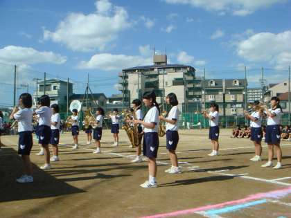 サッカー部、吹奏楽部、バドミントン部の様子です。