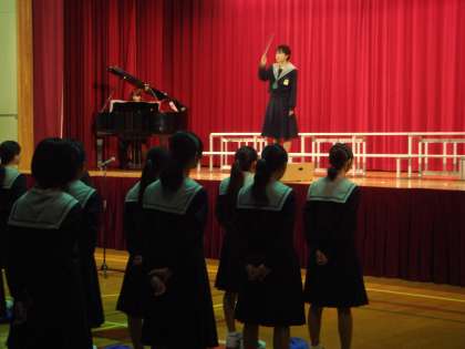 当日まで、毎日のように練習を繰り返していました。当日も、教室で声出しをしてから、入場しました。
