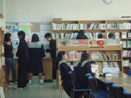 10/22(木)昼休みの図書室開館の様子です。2年生の開館の日でした。学校元気アップの地域コーディネーターさん、10月15日から勤務の図書館補助員さんとともに読書の時間を楽しんでいました。