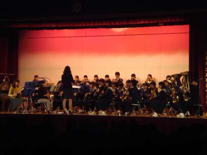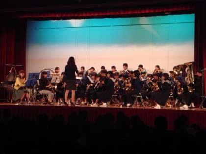 いつもの吹奏楽部の演奏に加えて、指揮者が交代したと思ったら、吹奏楽部の顧問の先生はもちろん、顧問以外の先生も参加しての演奏となりました。