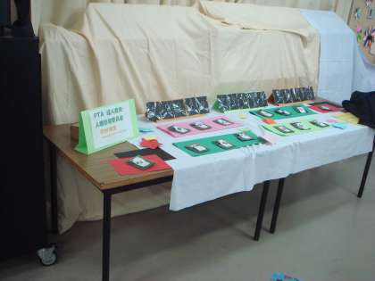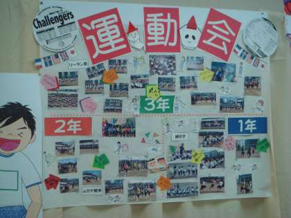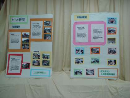 PTA広報委員会の運動会の掲示物 と 成人教育委員会・人権啓発委員会の社会見学の掲示物 と 手作り教室の作品です。
