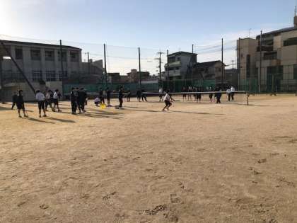運動場では、野球部、サッカー部、ソフトテニス部が活動しています。