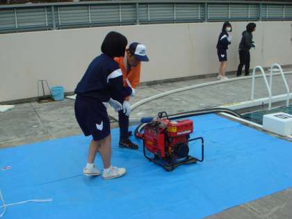 3年生放水訓練の様子です。去年の3年生は、一部の班が体験できず、時間切れで、班を決めたのに体験できなかったということがありましたが、今年は、時間内にすべての班が体験できました。