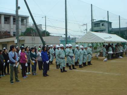 開会式の続きです。校長先生、平野区長様からのお話を聞きました。また、当日は、地域の防災リーダーの皆さん、PTAの皆さんの協力のもとに訓練を行うことができました。