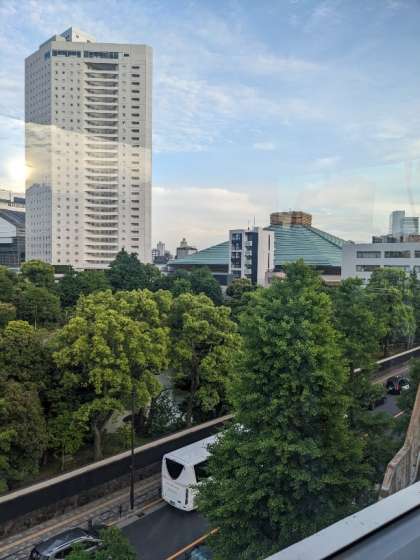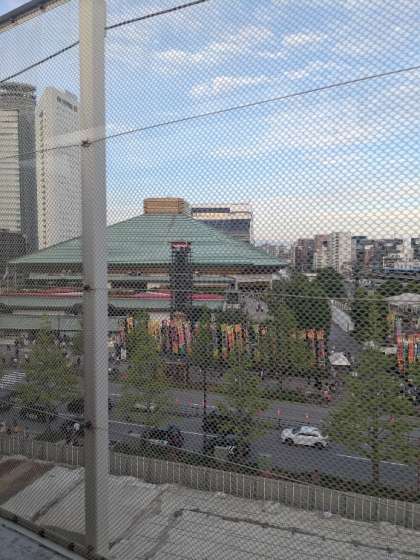 東京スカイツリーを出て、お台場のレストランに向かっています。両国国技館を左に見ながら首都高走っています。今日は、大相撲夏場所12日目が開催されているので、相撲のぼりがたくさん見えます。
