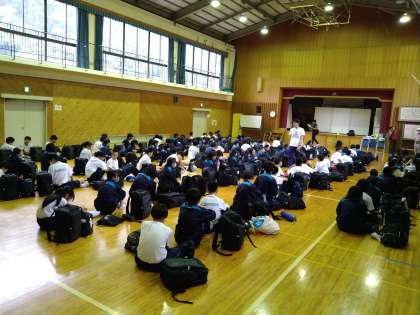 カレー作りの片づけを終え、全員が体育館に集合しました。