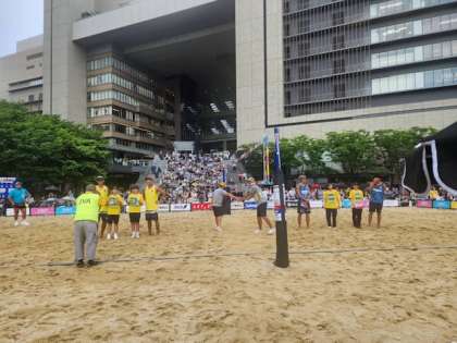 ビーチバレージャパンツアーグランフロント大阪大会の決勝戦の選手エスコートを瓜破西バレーボール部の女子1年生が務めてくれました。