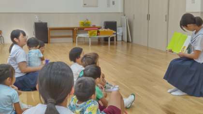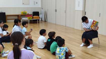 続いて、本番の読み聞かせです。園児の皆さんは集中しています。今日は楽しかったですか。それではまたね。