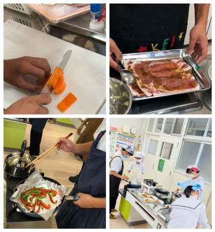 調理実習で豚の生姜焼きとにんじんしりしりを作りました。
