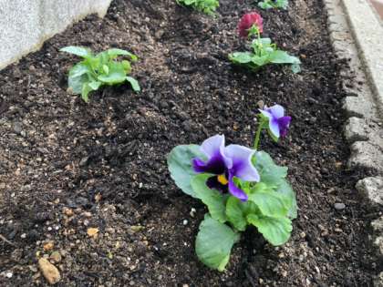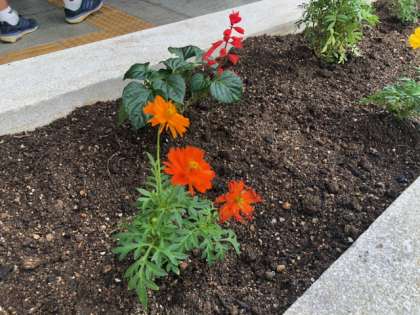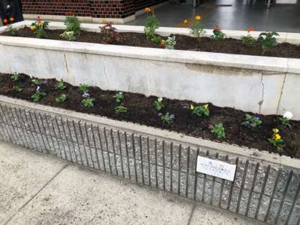 ガーデニングボランティアの方が、正門前の花壇に花を植えてくださいました。