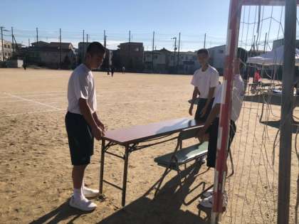 朝早くから3年生体育委員や先生たちが準備をしてくれました。