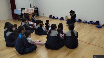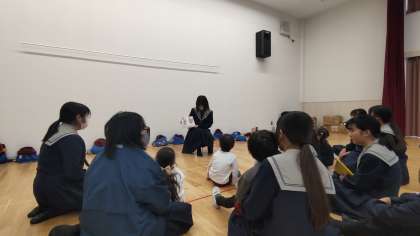 そうして、3人の中学生による読み聞かせです。二学期最後にふさわしく、面白い内容で、園児さんたちも大喜びでした!また、来年もよろしくね!