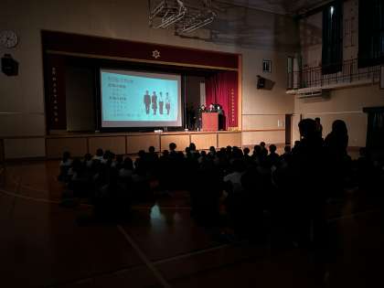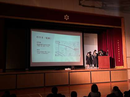 班ごとに調べてパワーポイントにまとめ、舞台で発表しました。