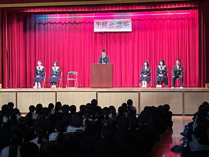 各役職に立候補した生徒が、全校生徒の前で演説を行いました。