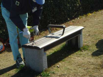 同じく、瓜破霊園にある、かまどを内蔵しているベンチです。組み立てるとこんな感じです。また、本部と連絡を取ります。