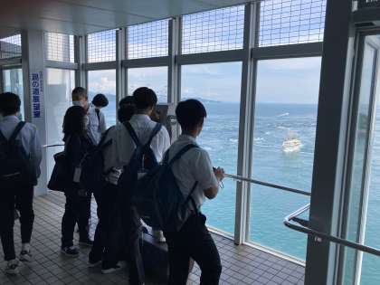 明石海峡大橋の下を歩き、渦潮を真上から見学しています。