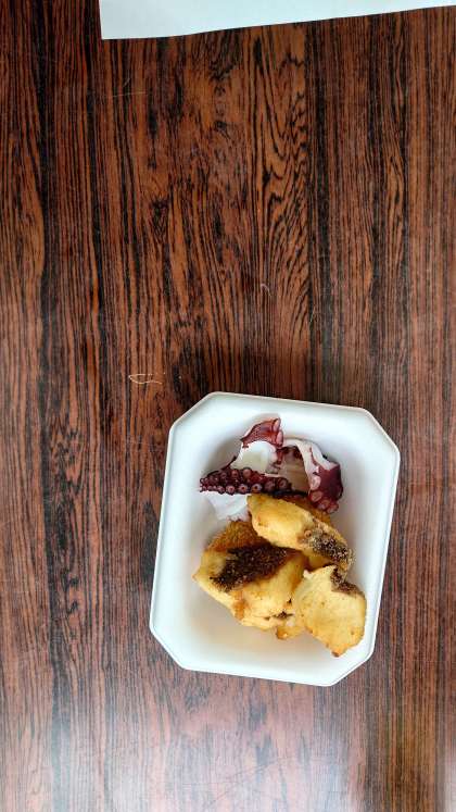 貝殻キーホルダー作りをしている間に、採れたての魚を調理していただきました。