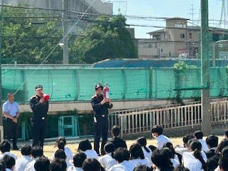 6月20日金曜日に平野消防署の方に来校いただき、火災を想定した避難訓練を行いました。