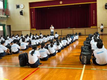 教頭先生、学年主任の先生からのお話の後、生徒代表挨拶があり、一泊移住への決意を示しました。