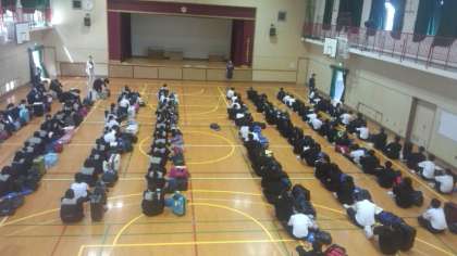 あすから修学旅行です。5時間目は、体育館で荷物の確認をしました。