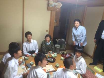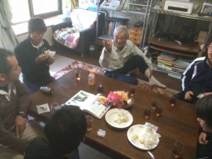 農家での様子です。真ん中の写真は、築100年の家です。自分たちで作った長野県名物のおやきの試食です。