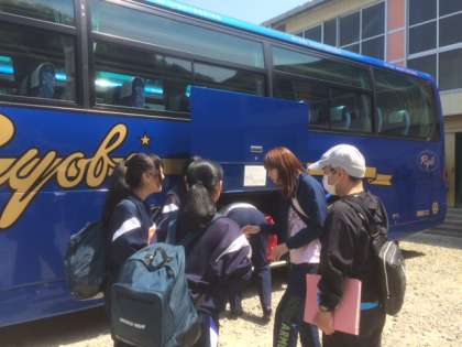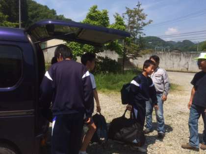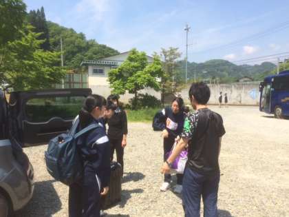 3年生が、退村式を行うスポーツセンターに戻ってきました。