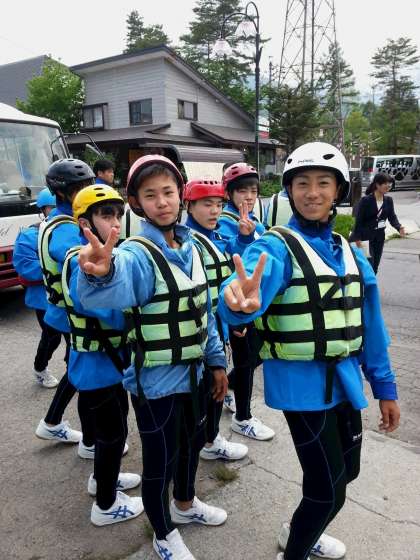 みんな、着替えて、ラフティングの準備は、できました。