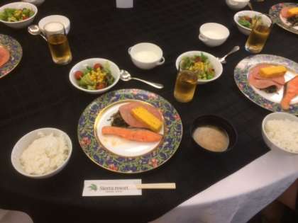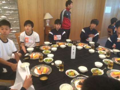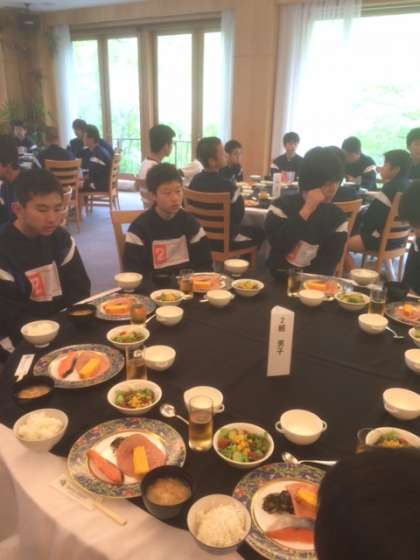 朝食の様子です。みんなまだ眠たい様子ですね。