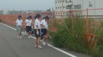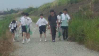 大和川の堤防・河川敷の清掃を西隣の中学校を越える西の地域から東の方向に向かって、やって行きました。