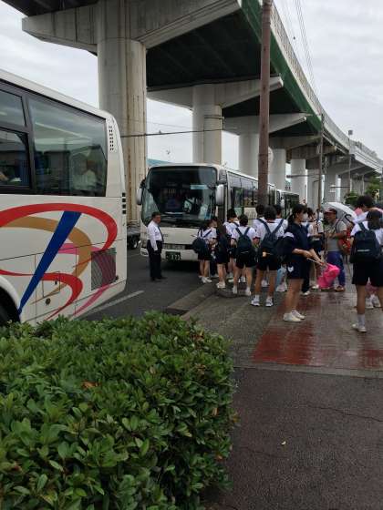 朝から、天気が悪く、雨も降っていますが、2年生は、8時50分頃、遠足に出発しました。