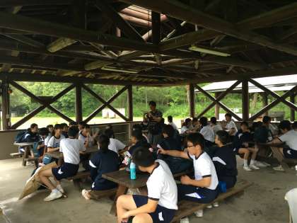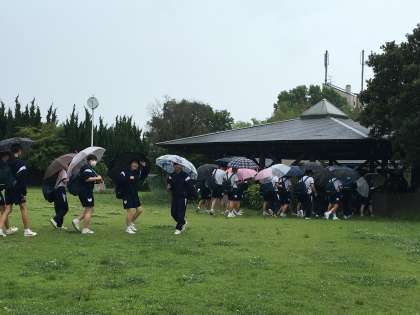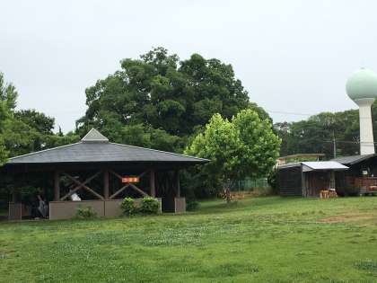 信太山キャンプ場に到着しました。でも、雨が降っています。