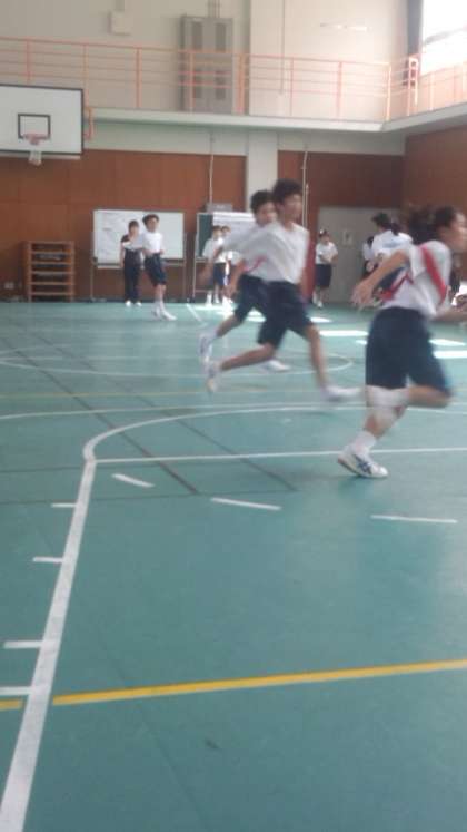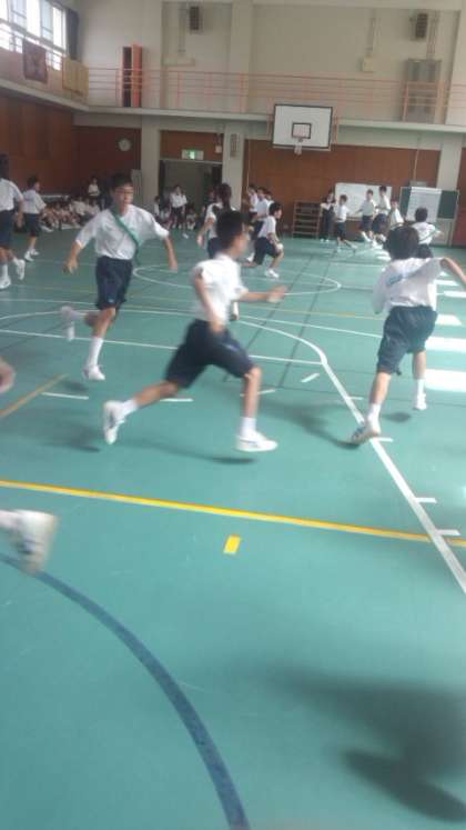 一泊移住二日目の午前のプログラムは、体育室でのレクレーションでした。まずは、クラス対抗鬼ごっこです。