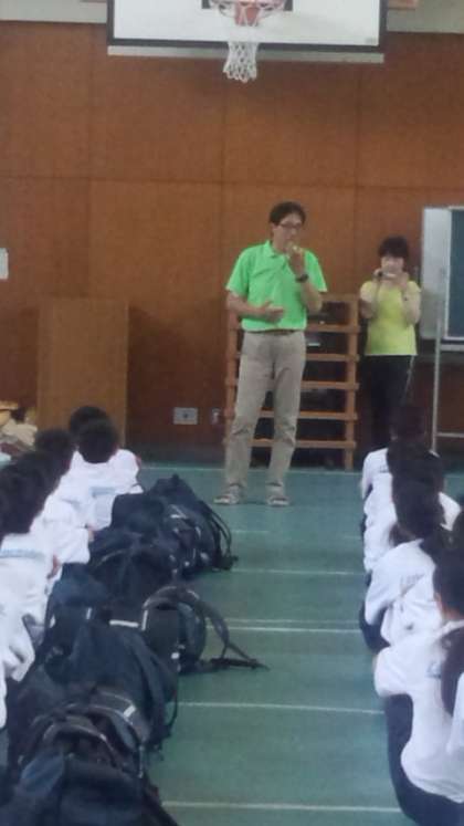 退館式を行いました。生徒代表の挨拶とともに、全員で、感謝の言葉を伝えました。そのあと、自然の家の職員の方の挨拶がありました。