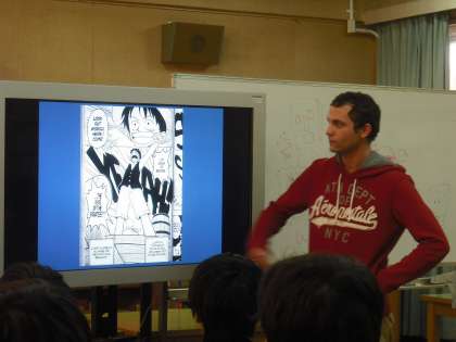 ジェイソン先生のオーバーアクションに少しとまどう様子もありましたが、わかる単語があると何度も発音を確認する生徒もいたり、みんな熱心に参加していました。