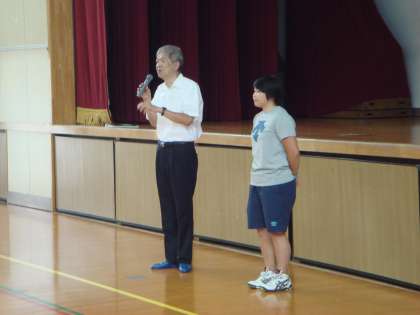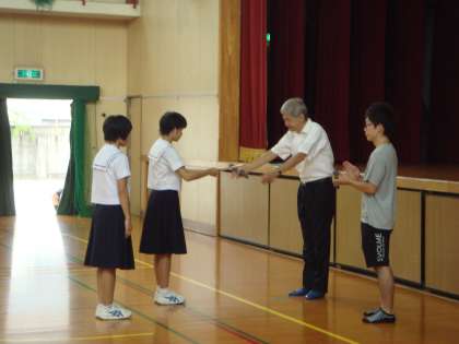 3年生のバレー部員への賞状伝達がありました。ひきつづき、出産のため休暇に入った先生の代わりに着任した先生の紹介がありました。
