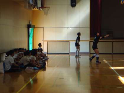 今度は、部活動の見学です。バレーボール部、バドミントン部、柔道部の様子です。