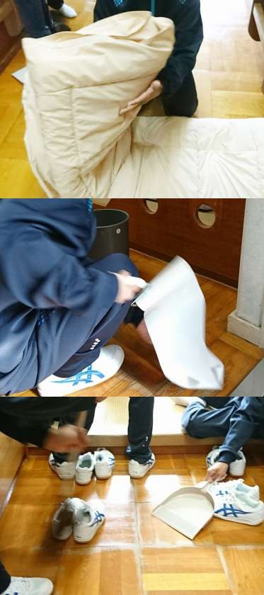 少年の家では訓練を目的にして、共同生活を送ることです。生徒のみんなにとっては、布団やシーツのたたみ方が、とても難しかったようです。