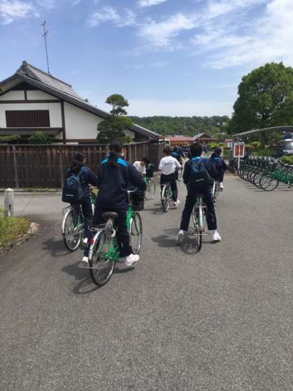 自転車に乗って出発しました。 天気もよく、人もたくさんいます。
