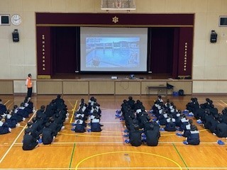 3年生に向けて平野区防災士の福島先生に防災授業をしていただきました。