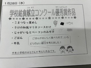 今回は中本小学校5年1組の皆さんが考えてくれた献立です。