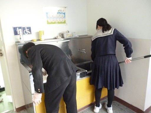 教室内や廊下はもちろん、手洗い場の排水溝もきれいに清掃してくれました。