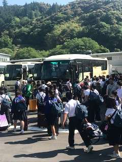 9:00から退村式を行い、ホストファミリーの皆さまとお別れをしました。生徒全員が感謝と淋しい気持ちでお別れしました。これから琴平にに向かいます。