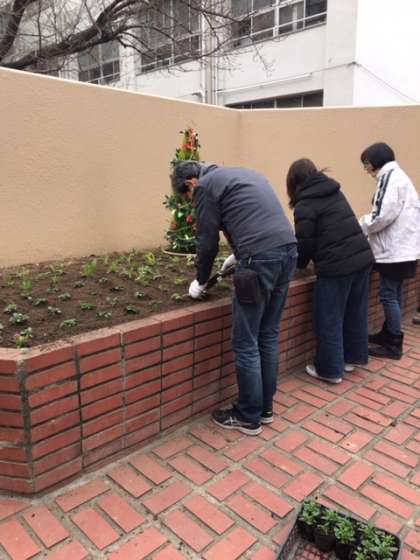 みなさん熱心に作業をしていただき、正門周辺の花壇の定植が無事