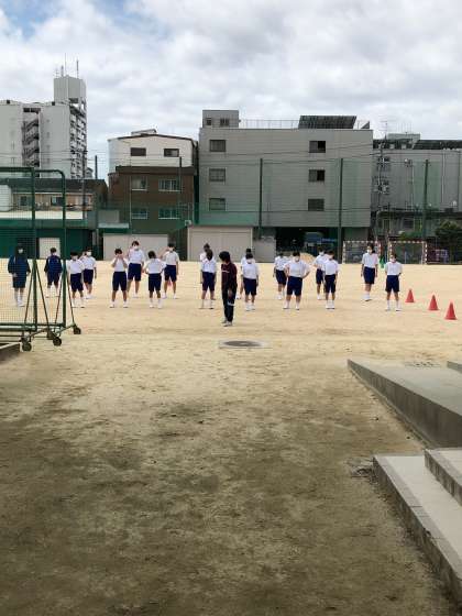 身体計測、視力検査・聴力検査を行い、運動場で軽い運動を行いました。