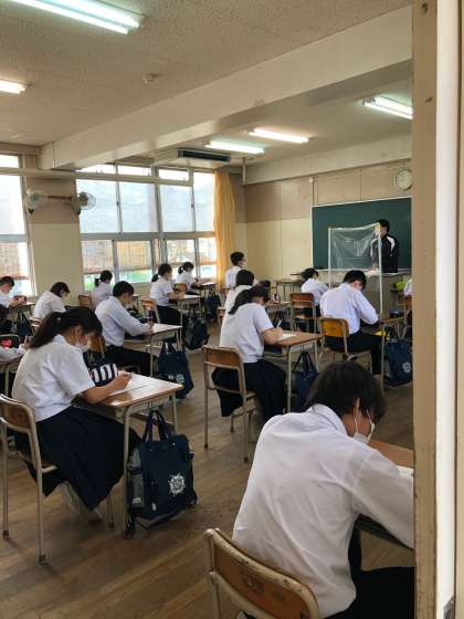1・3年生は出席番号で前後半を決めて登校しました。2年生は各グループごとに決められた時間に登校しました。3年生のカウンセリングの様子です。また、全学年で授業が始まりました。パンと牛乳を食べて下校しました。