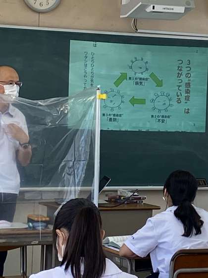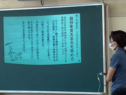 全学年でソーシャルディスタンスを考え、授業の工夫がされています。今回は2年生の授業の様子です。