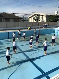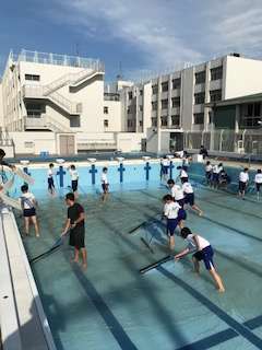 昨日から体育委員会のメンバーでプール掃除を始めています。