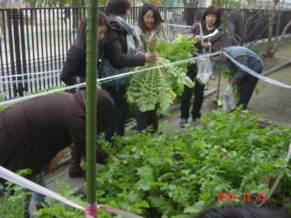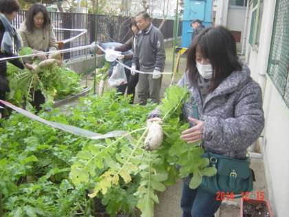 園芸講習会終了後、地域ボランティアの方々に、天王寺蕪、田辺大根の収穫にも協力していただきました。ありがとうございました。