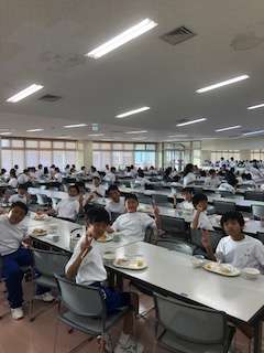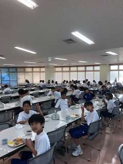 1.2組、晩ご飯では密を避けるために2クラスで食べました。