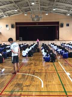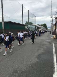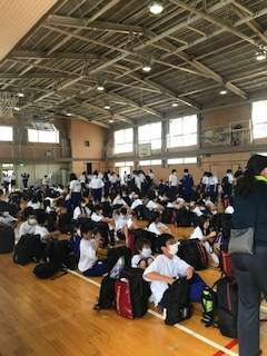 1年生が帰校しました、怪我や病気もなく全員元気です。この後、帰校式をして解散します。
